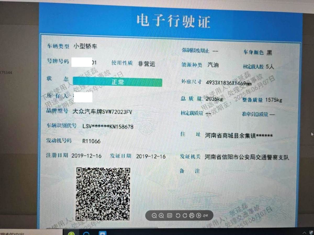 车牌号 豫****** 品牌 大众