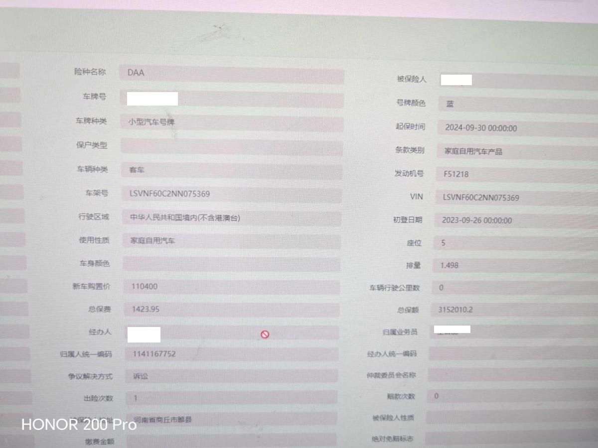 初次登记日期 2023-09-26 车辆名称 大众 朗逸