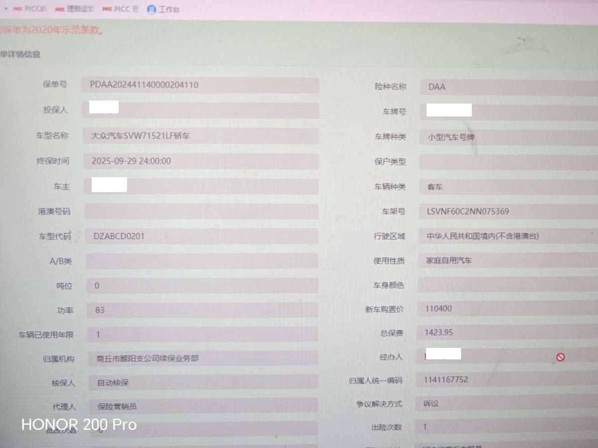 车牌号 豫****** 品牌 大众