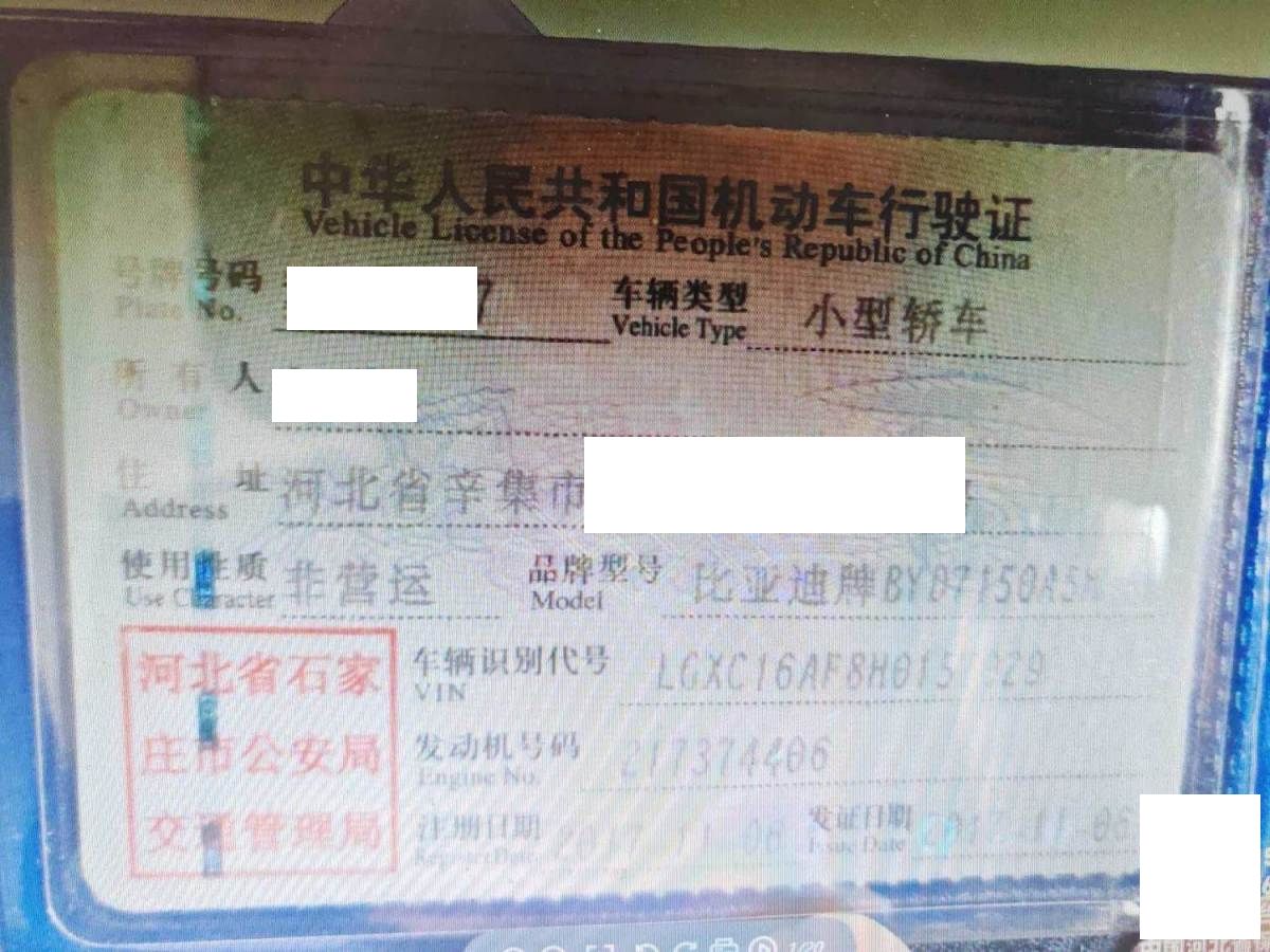 车牌号 冀****** 品牌 比亚迪