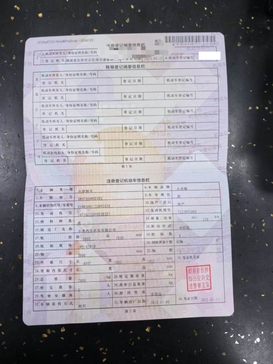 初次登记日期 2025-02-11 车辆名称 小米汽车