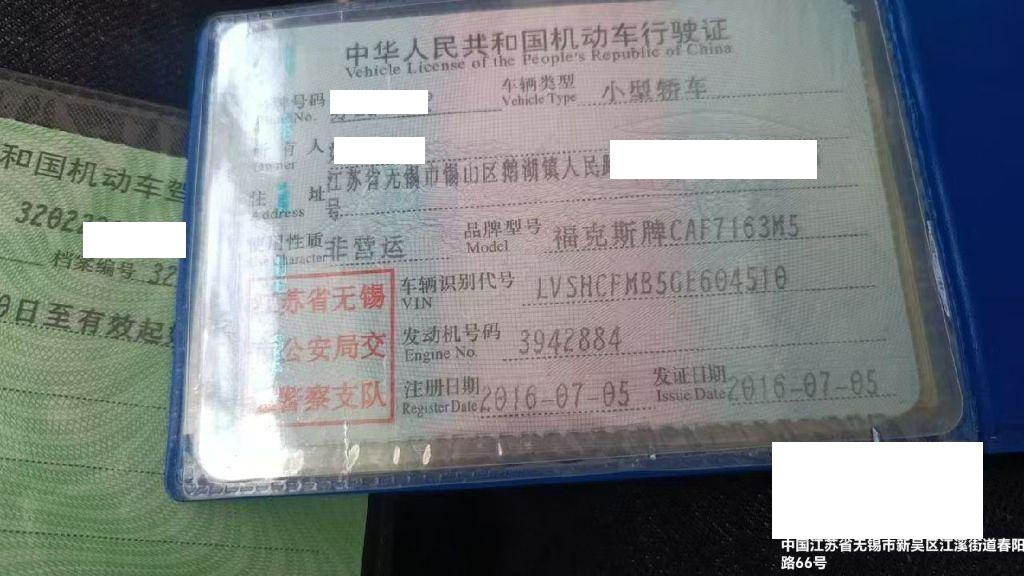 车辆归属地 江苏省无锡市 车辆停放仓库 江苏省无锡市
