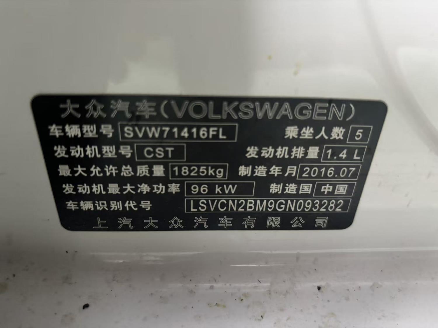 底盘号码 LSVCN2BM9GN093282 变速箱类型 自动