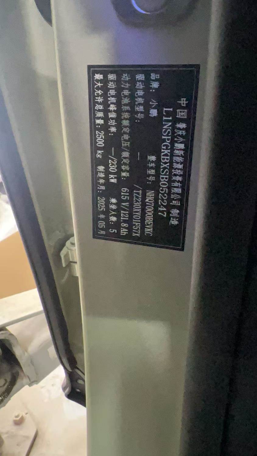初次登记日期 2025-05-20 车辆名称 小鹏牌