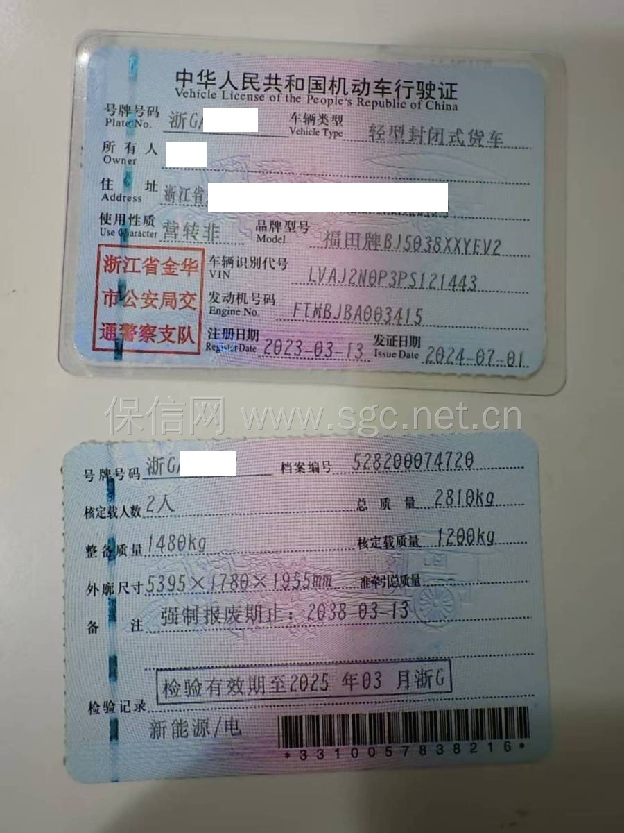 车牌号 浙****** 品牌 福田