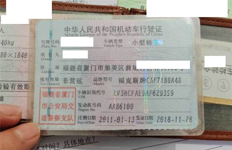 车辆归属地 福建省厦门市 车辆停放仓库 福建省漳州市