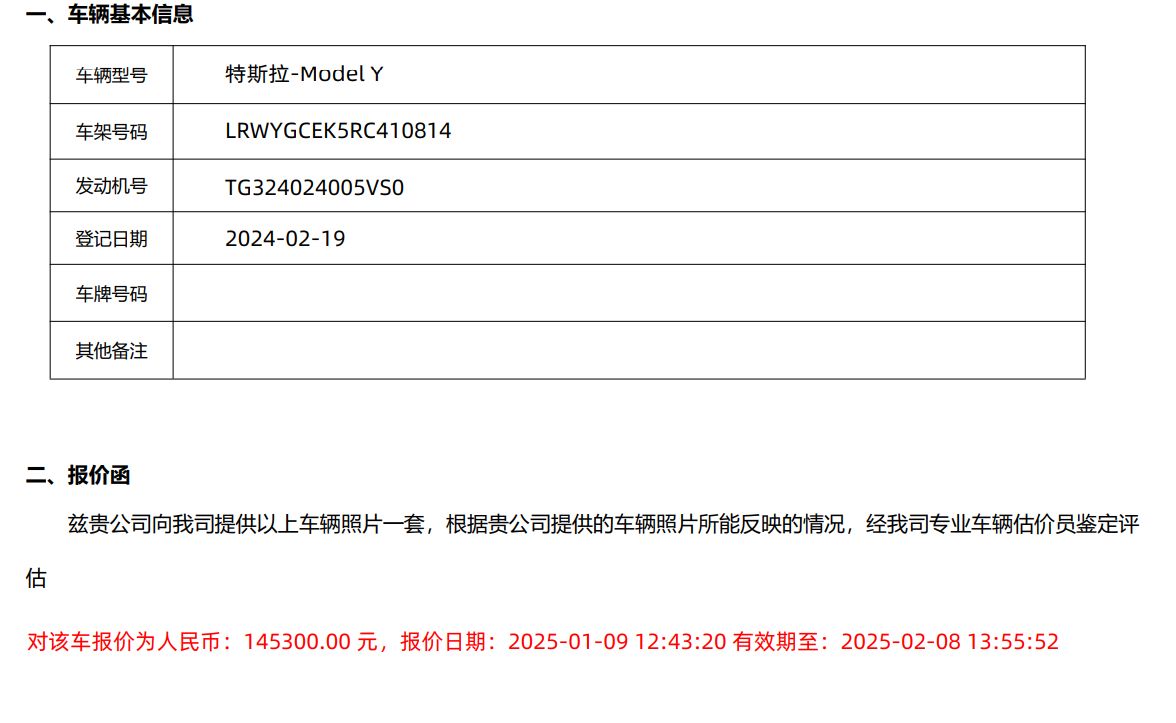 初次登记日期 2024-02-19 车辆名称 特斯拉 Model