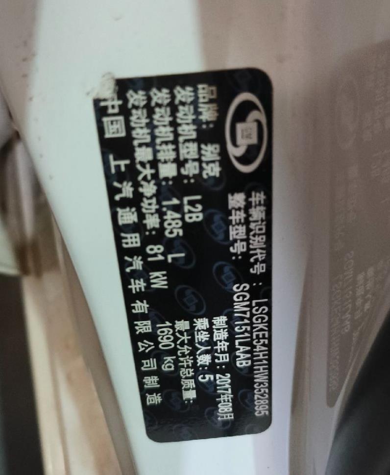 初次登记日期 2017-08-24 车辆名称 别克 英朗