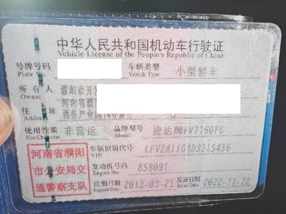 初次登记日期 2013-03-25 车辆名称 大众 捷达