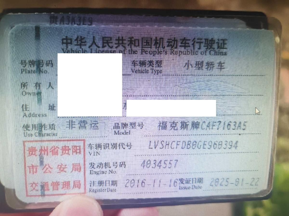 初次登记日期 2016-11-16 车辆名称 福特 福克斯