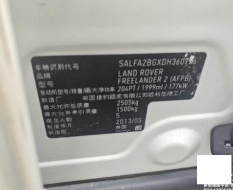 底盘号码 SALFA2BGXDH360776 变速箱类型 手自一体