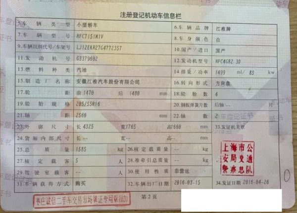 初次登记日期 2016-04-26 车辆名称 江汽集团 瑞风S3