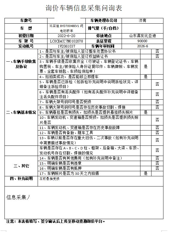 车架号是否受损 使用性质 非营运