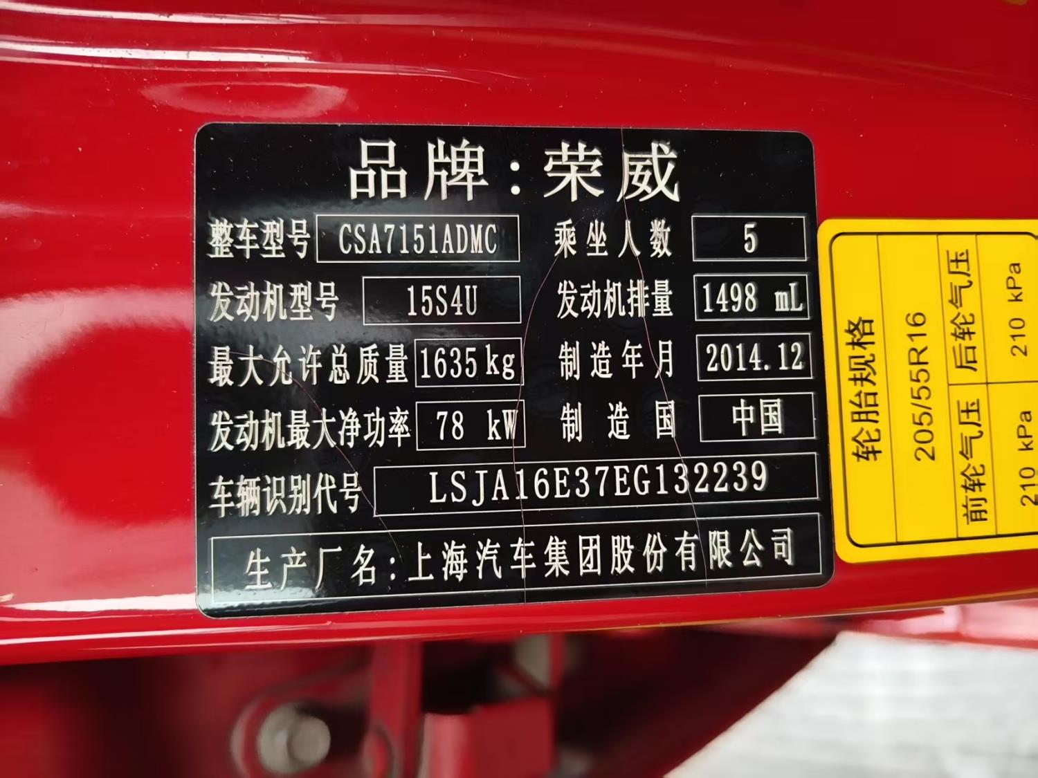 初次登记日期 2015-05-29 车辆名称 荣威350