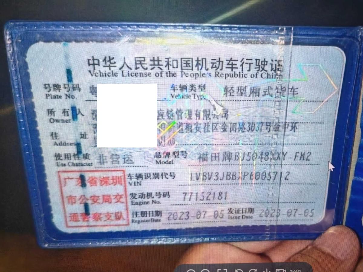 初次登记日期 2023-07-05 车辆名称 福田 欧马可S1