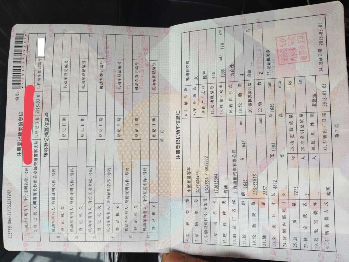 底盘号码 LSGNB83L2JA039032 变速箱类型 手自一体
