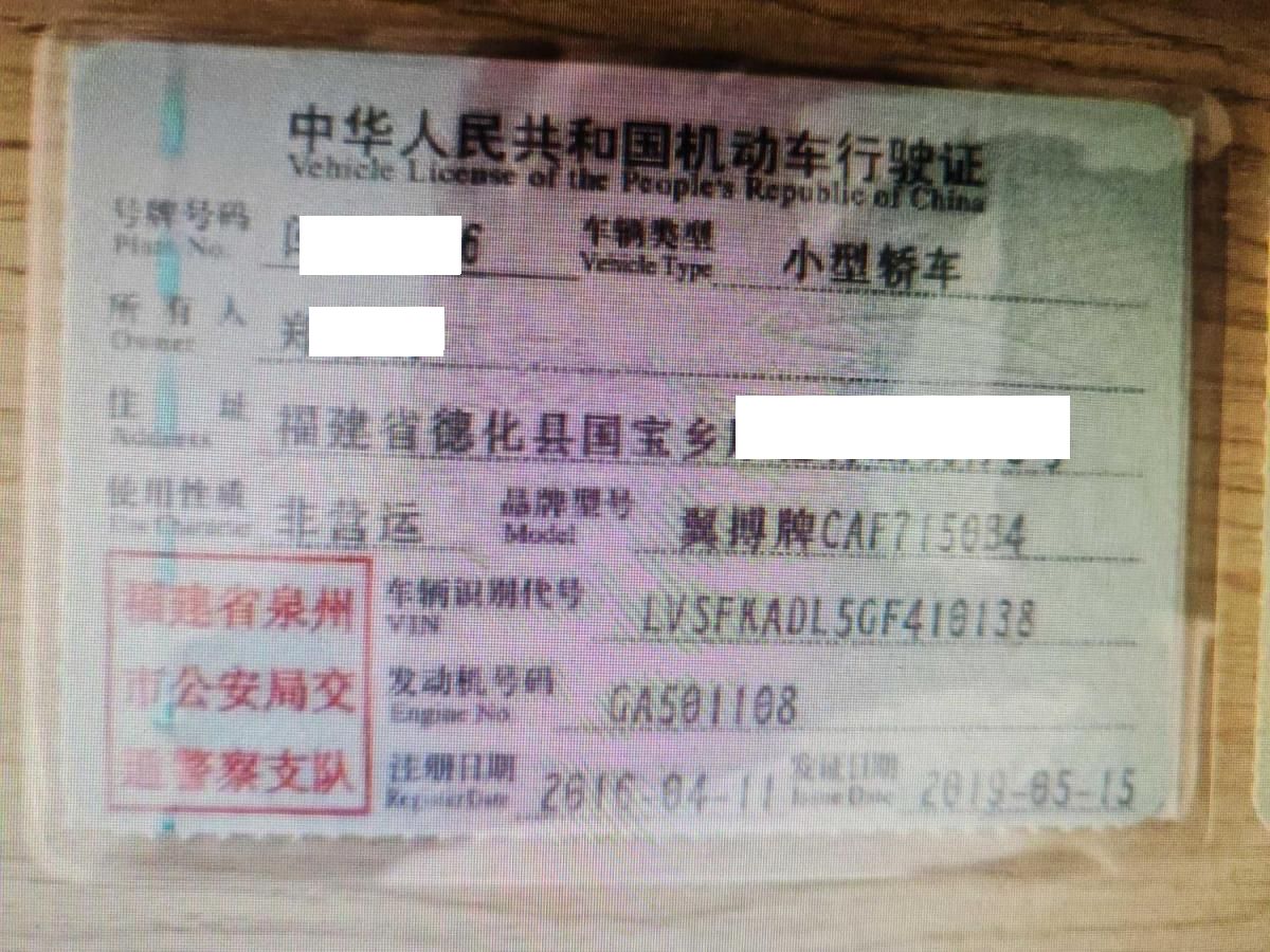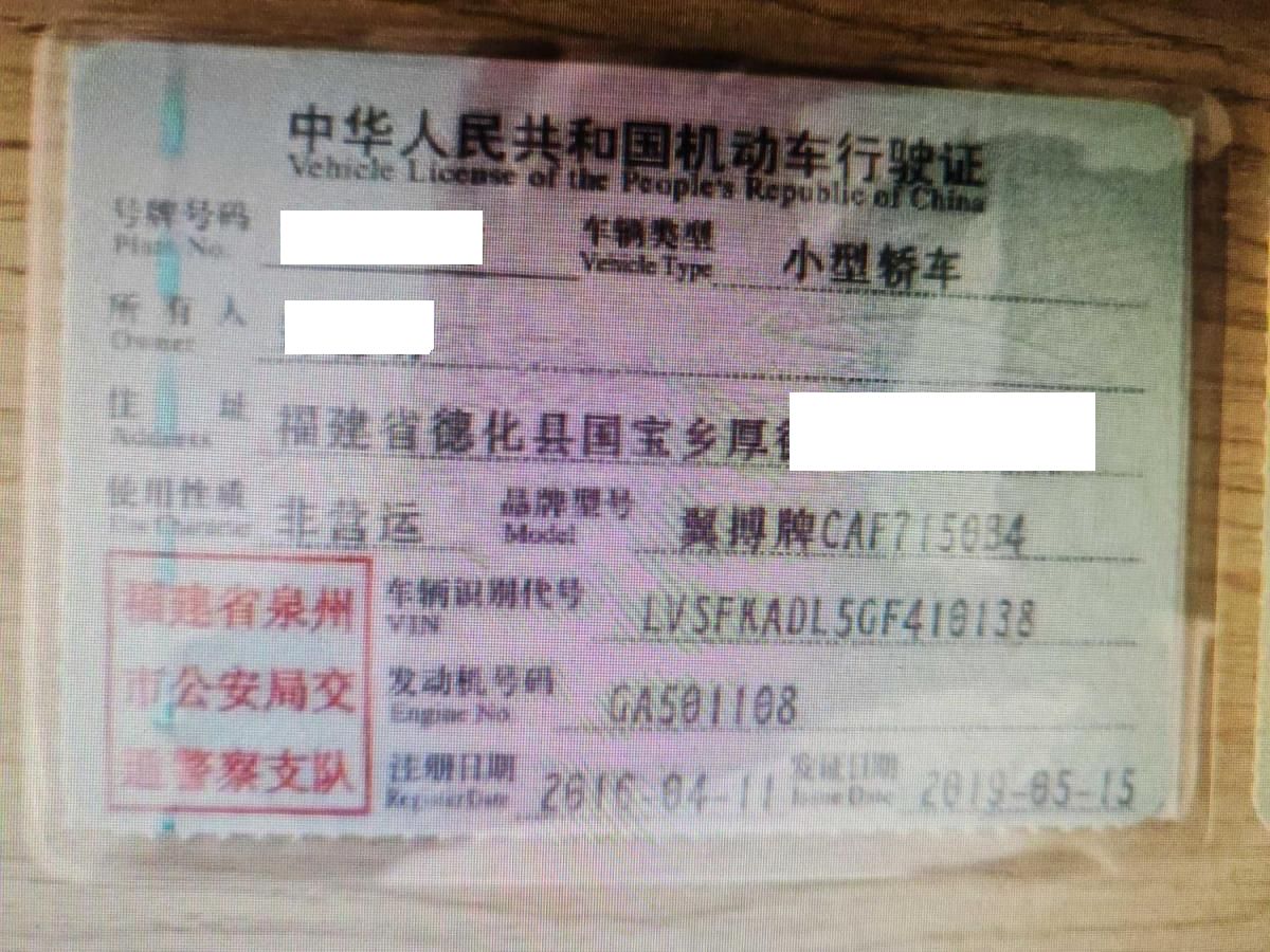 车辆归属地 福建省泉州市 车辆停放仓库 福建省泉州市