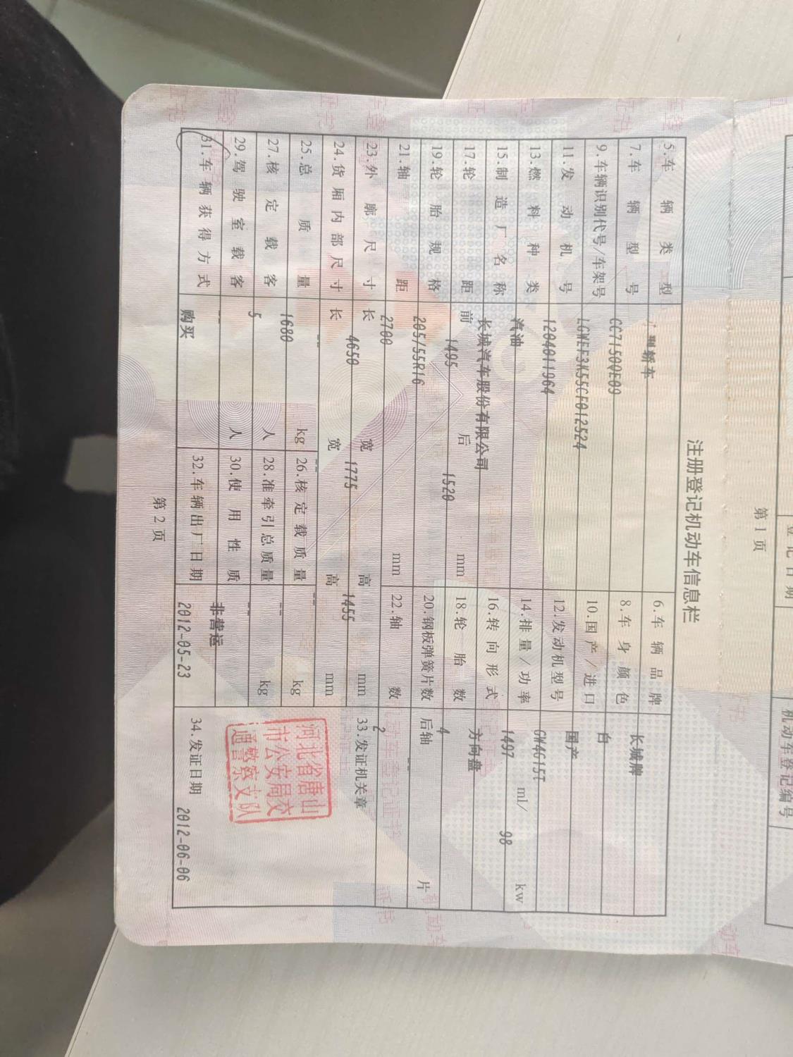 初次登记日期 2012-06-06 车辆名称 长城C50