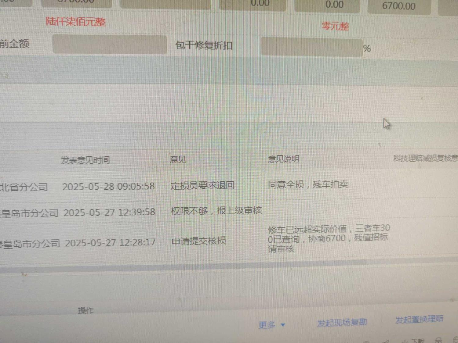 保险金额 ¥6700 预估维修金额 7000