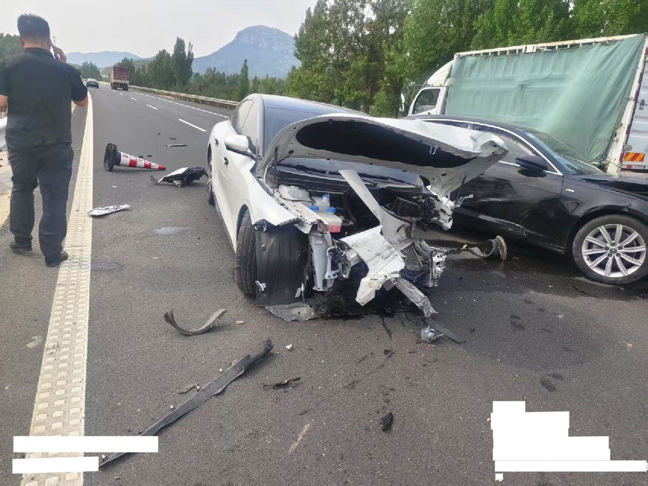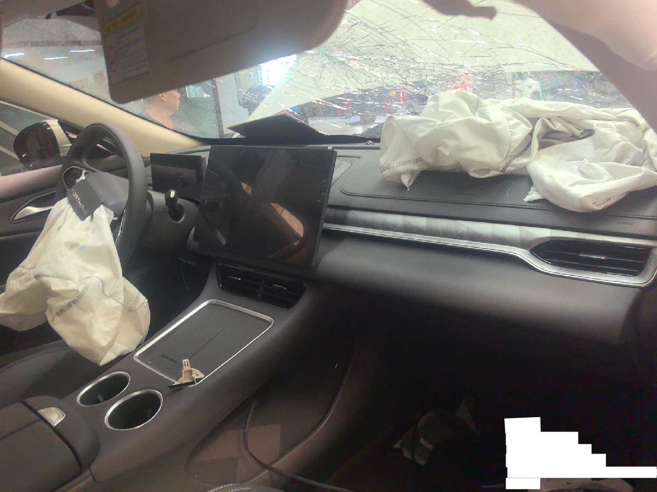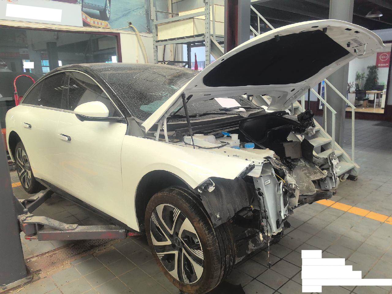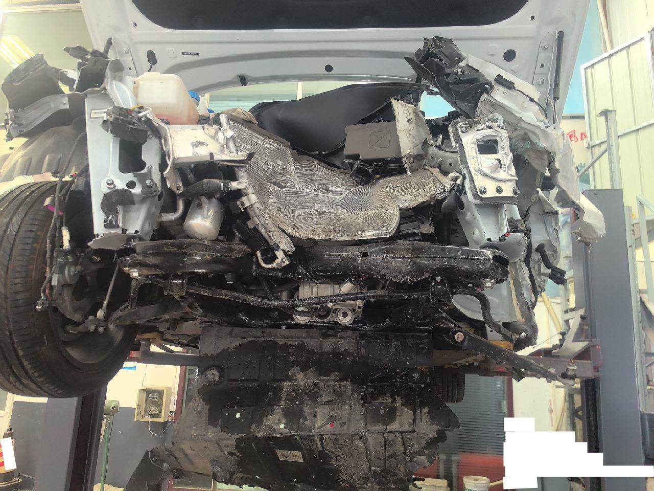 1.前杠及其附件、左右大灯撞碎丢失;2.左前、左后悬挂受损;3.分期购车,登记证书抵押