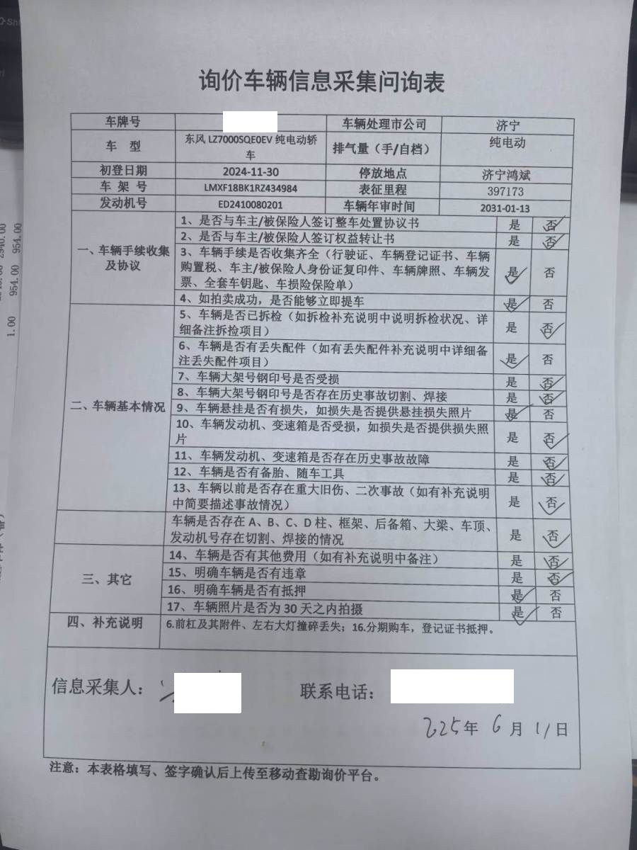 车架号是否受损 使用性质 非营运