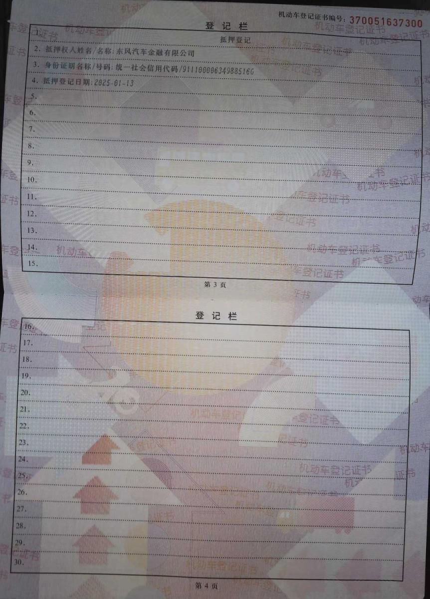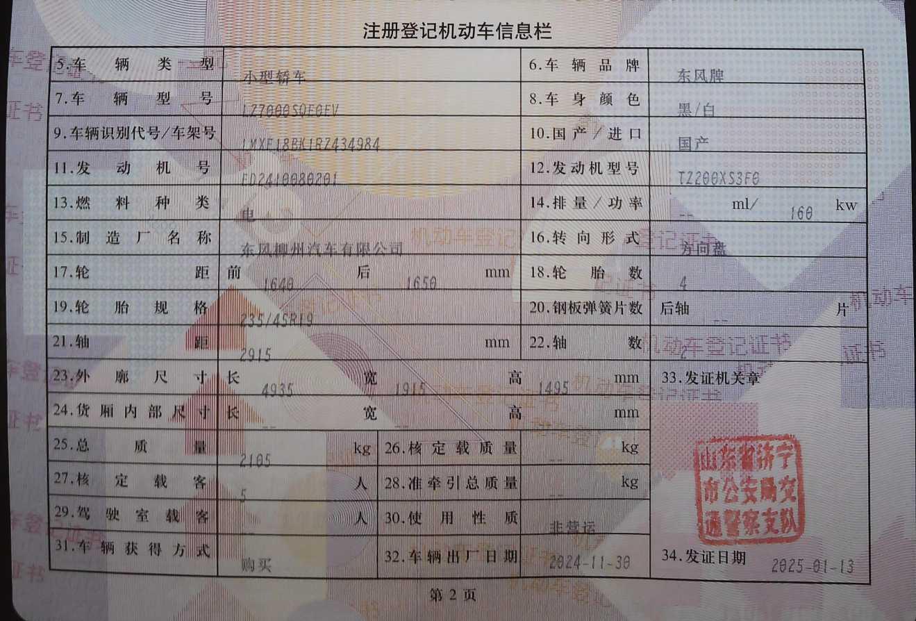 初次登记日期 2025-01-13 车辆名称 东风风行