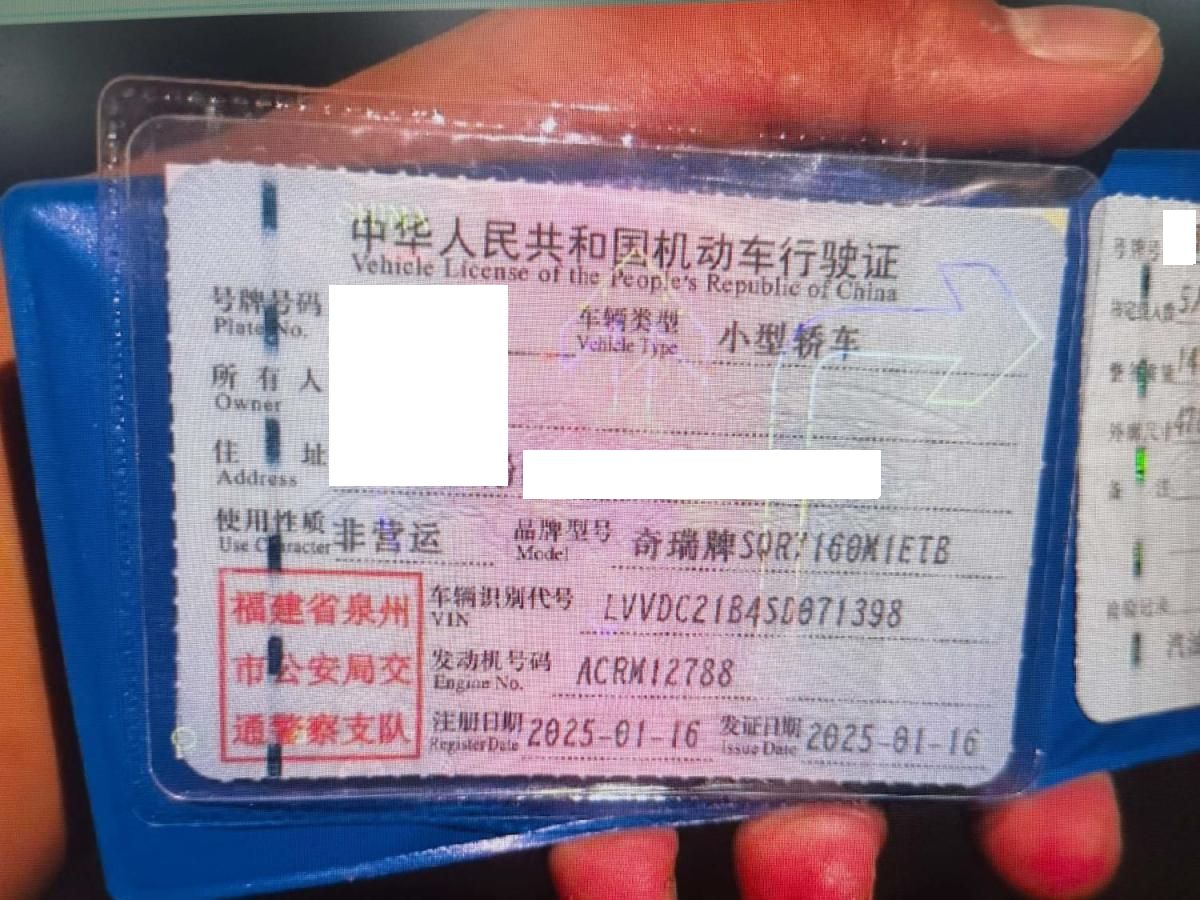 初次登记日期 2025-01-16 车辆名称 奇瑞 艾瑞泽8