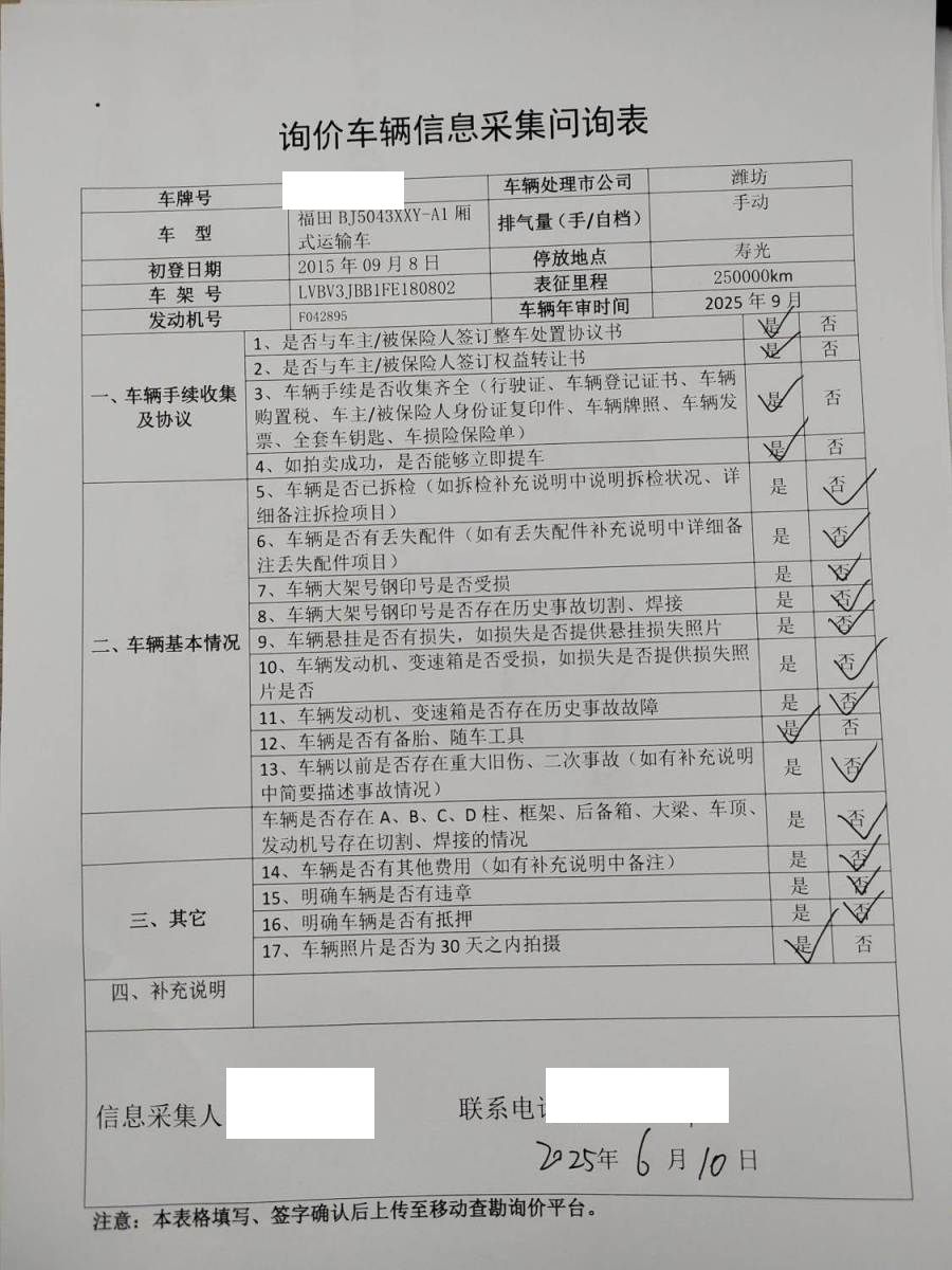 车牌号 鲁****** 品牌 福田