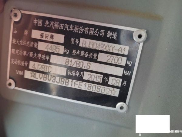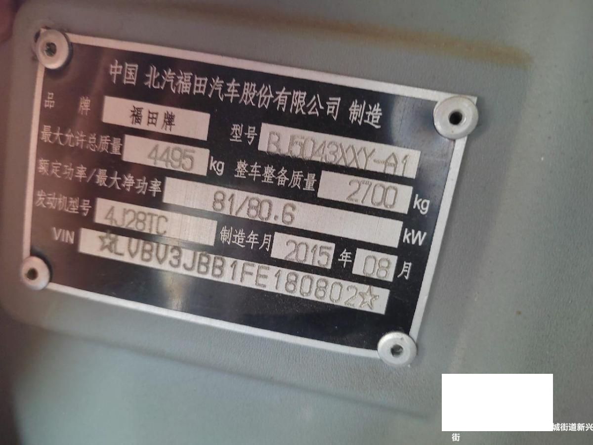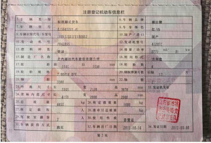 初次登记日期 2015-09-08 车辆名称 福田 时代康瑞