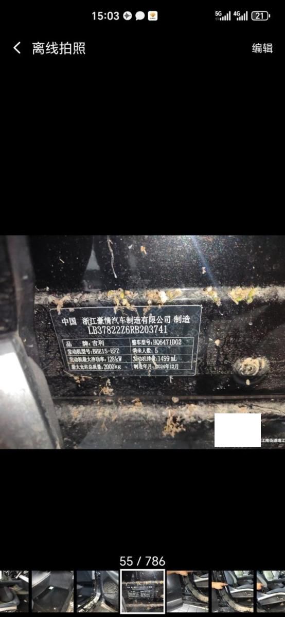 车牌号 浙****** 品牌 吉利