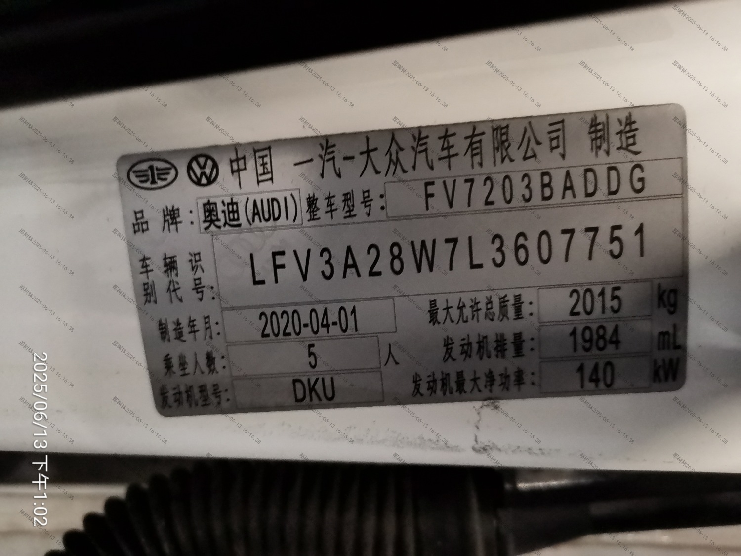 初次登记日期 2020-05-25 车辆名称 奥迪A4L