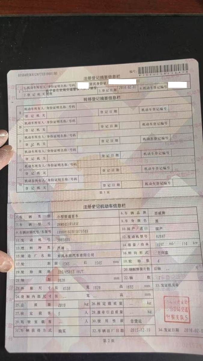 初次登记日期 2016-02-01 车辆名称 本田CR-V