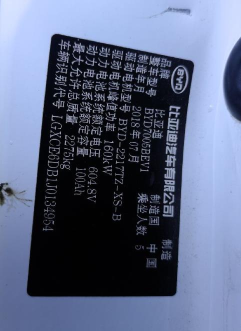 初次登记日期 2018-08-16 车辆名称 比亚迪