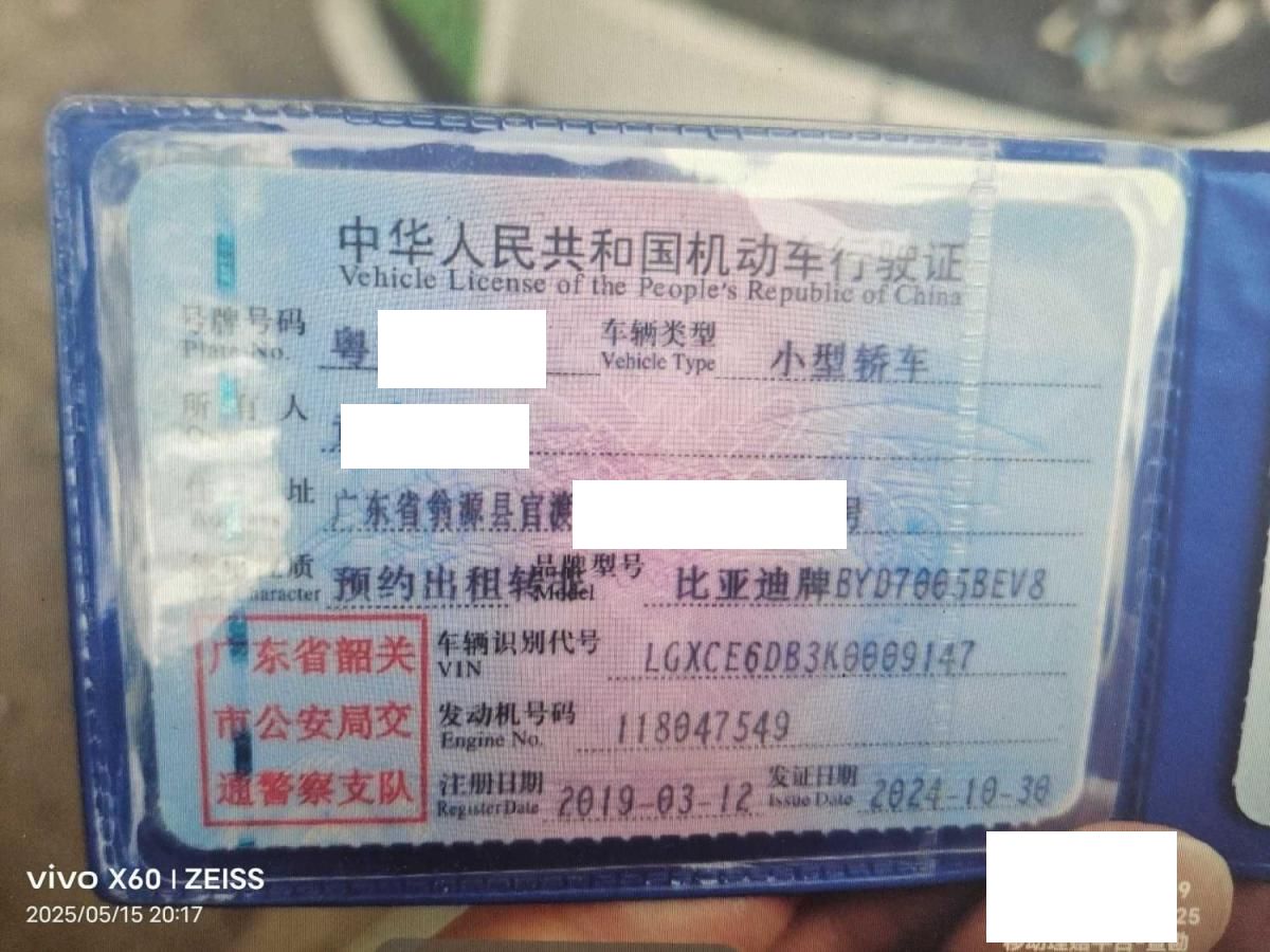车牌号 粤****** 品牌 比亚迪