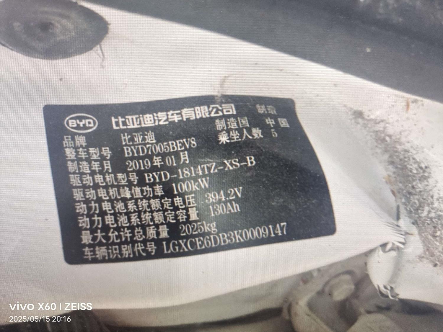 初次登记日期 2019-03-12 车辆名称 比亚迪