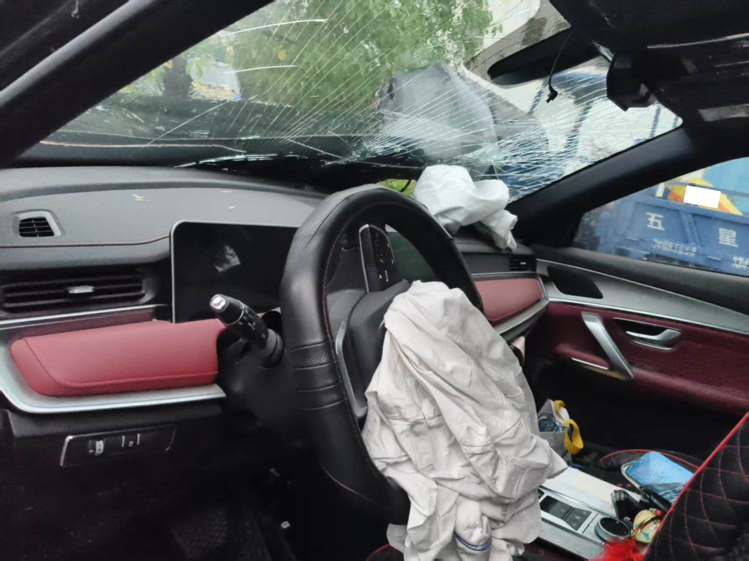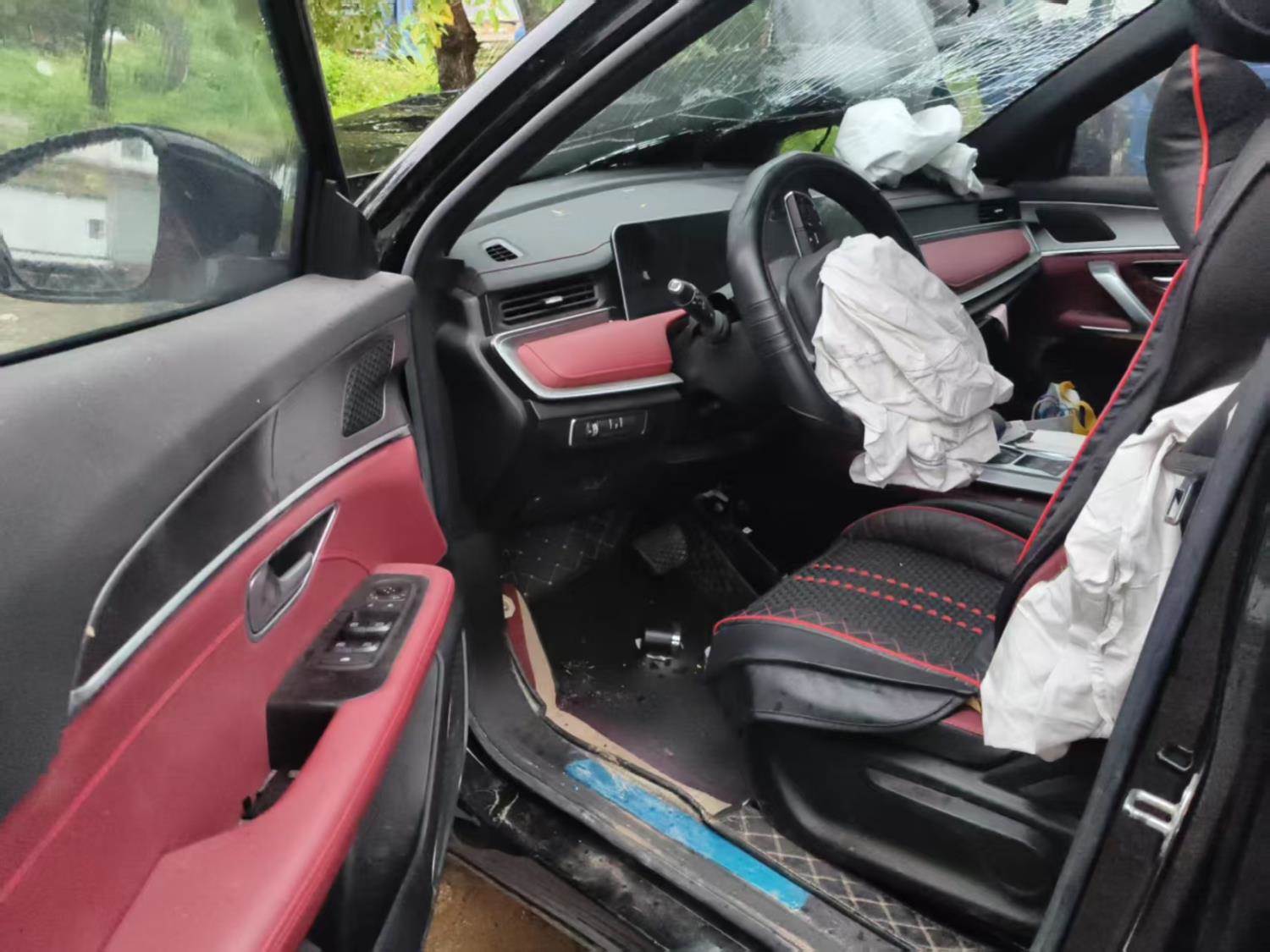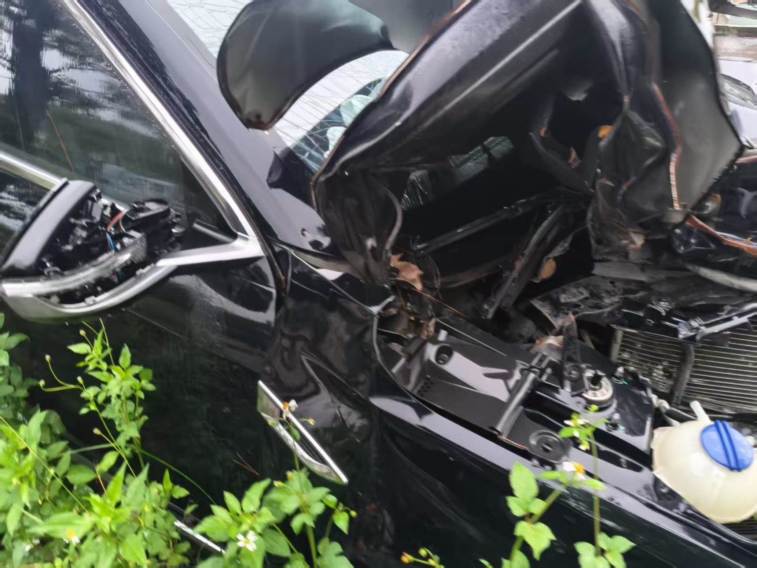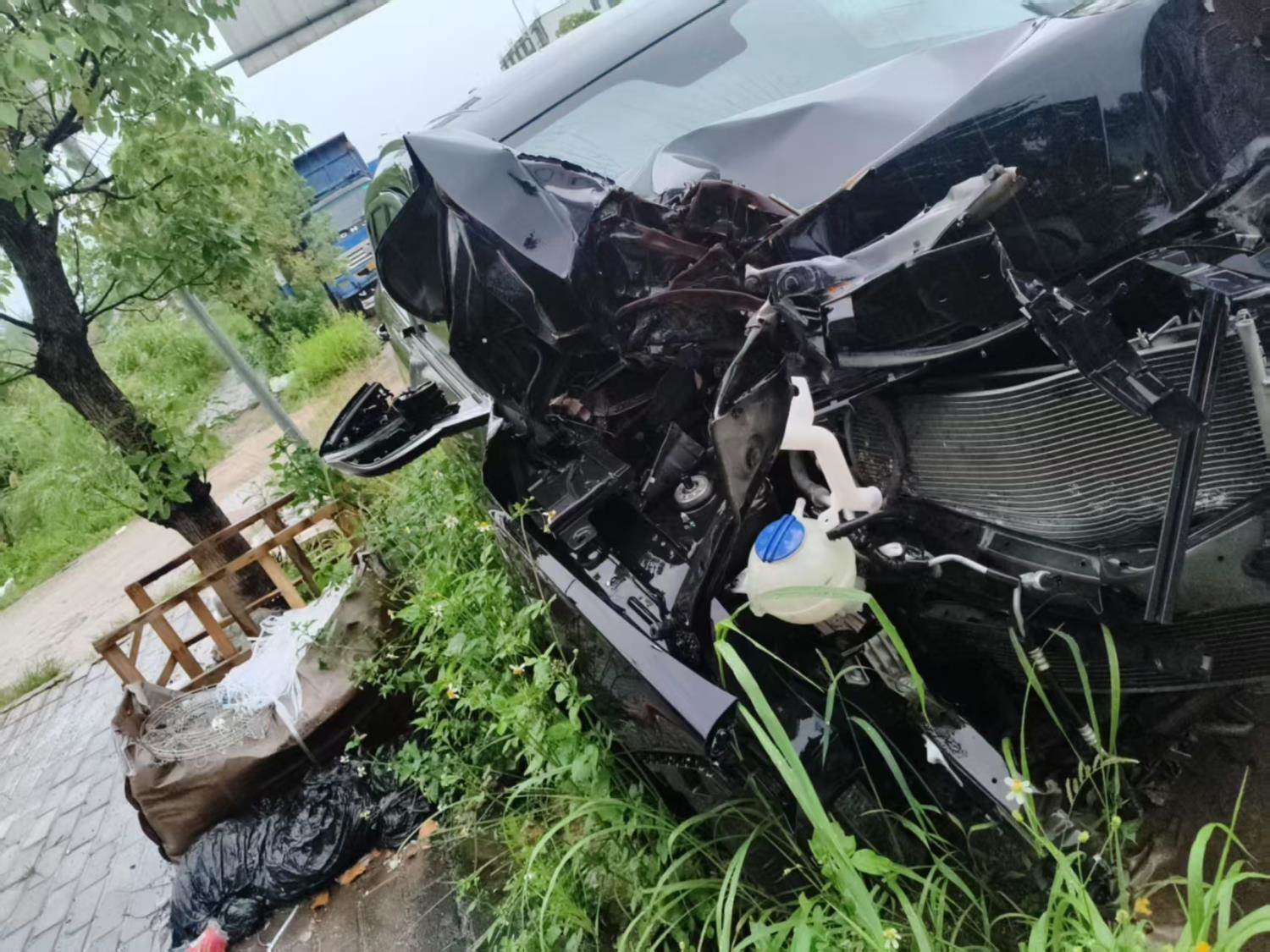 车子济广高速上撞树,目前车子停放在江西省赣州市会昌县筠门岭镇:会昌县富斌汽车服务有限公司旁边。无拆解