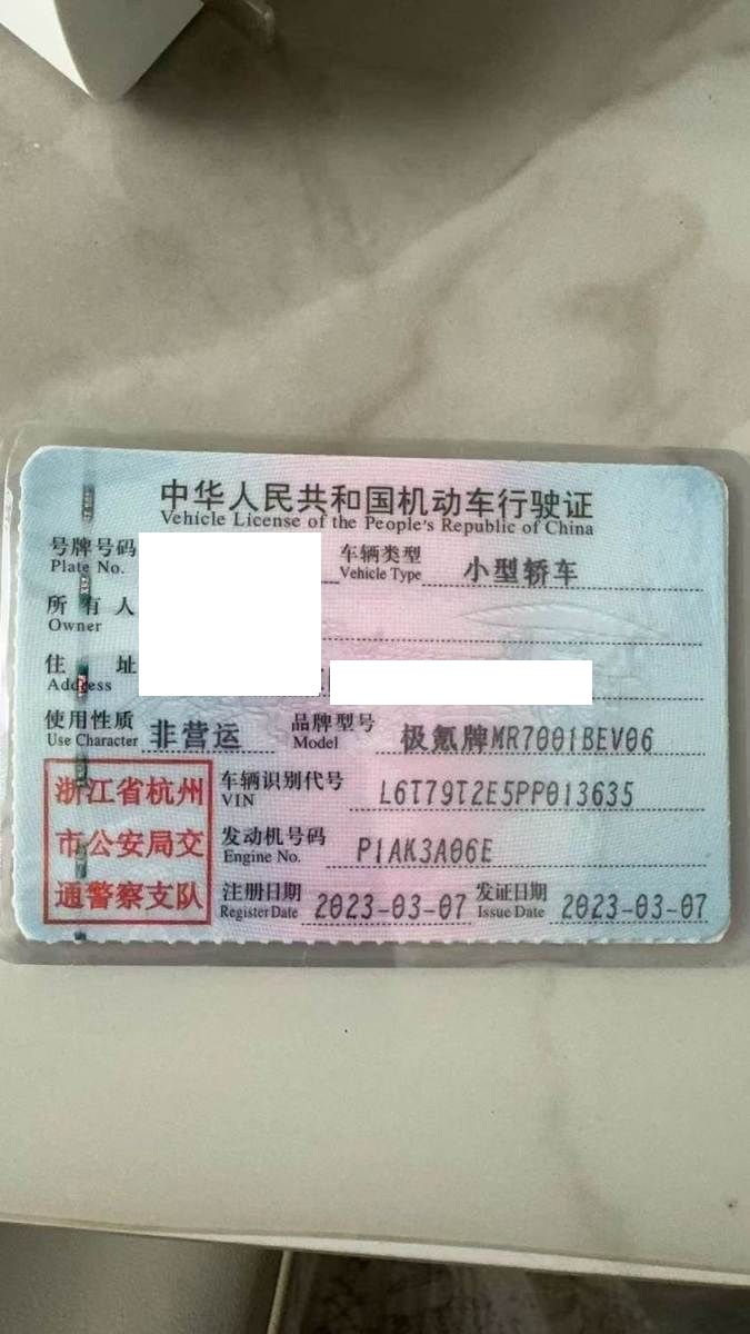 初次登记日期 2023-03-07 车辆名称 极氪牌