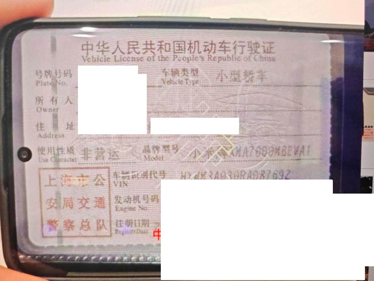 初次登记日期 2025-01-06 车辆名称 小米汽车 小米