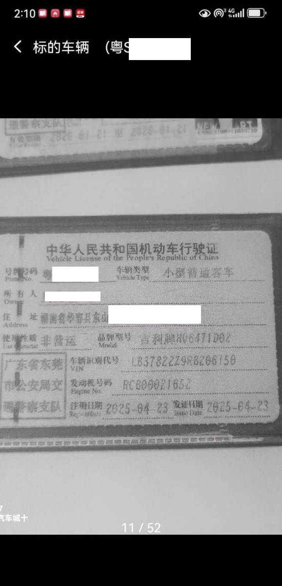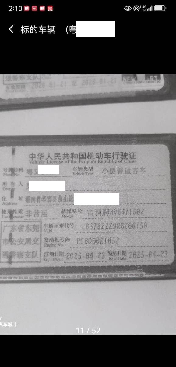 初次登记日期 2025-04-23 车辆名称 吉利汽车
