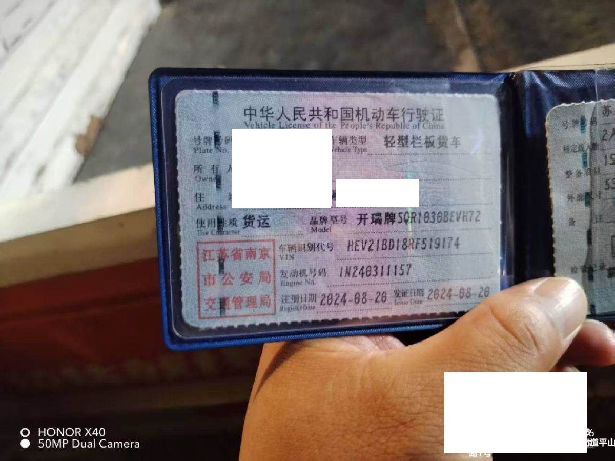 初次登记日期 2024-08-20 车辆名称 开瑞牌