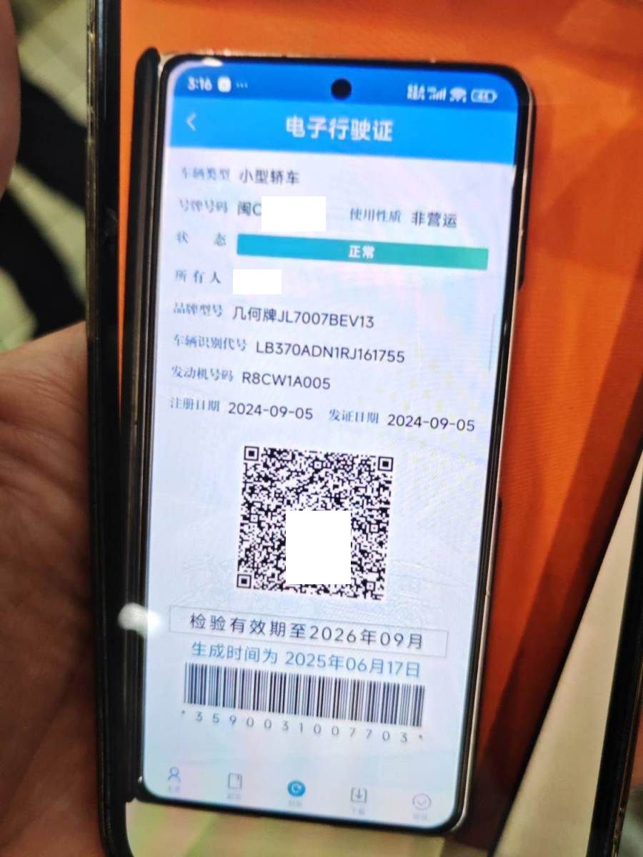 车牌号 闽****** 品牌 吉利