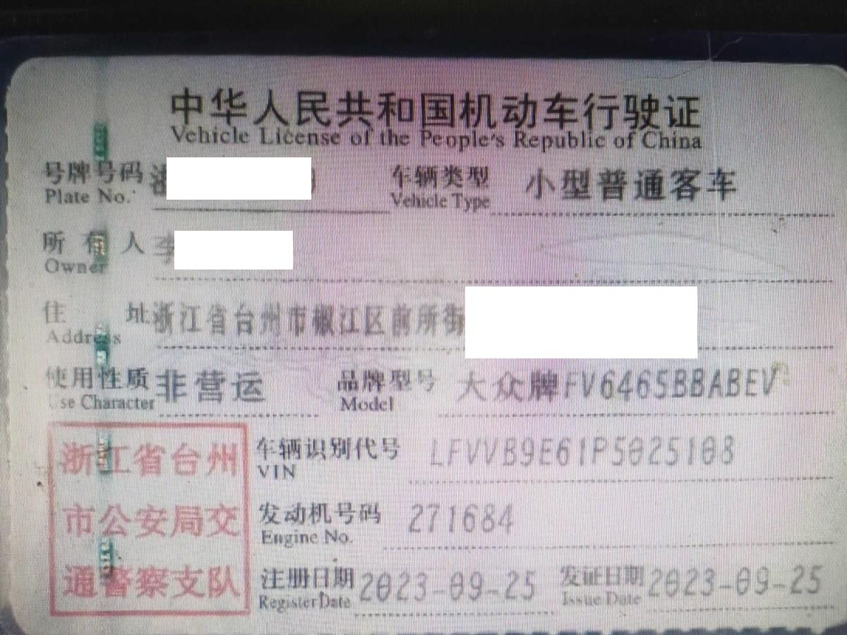 初次登记日期 2023-09-25 车辆名称 大众牌
