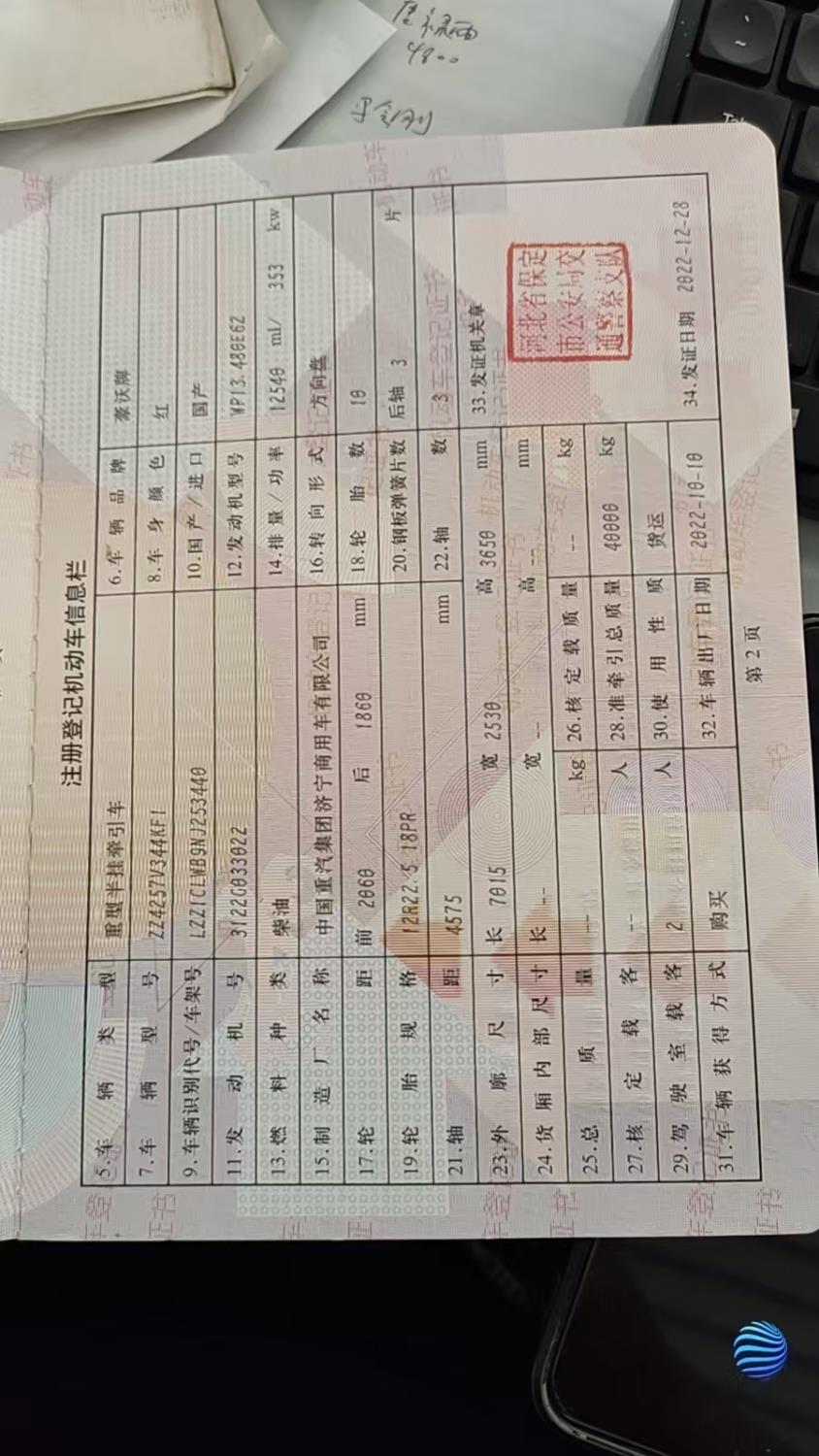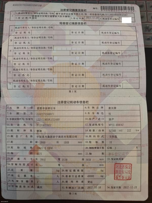 初次登记日期 2022-12-28 车辆名称 豪沃 豪沃MAX
