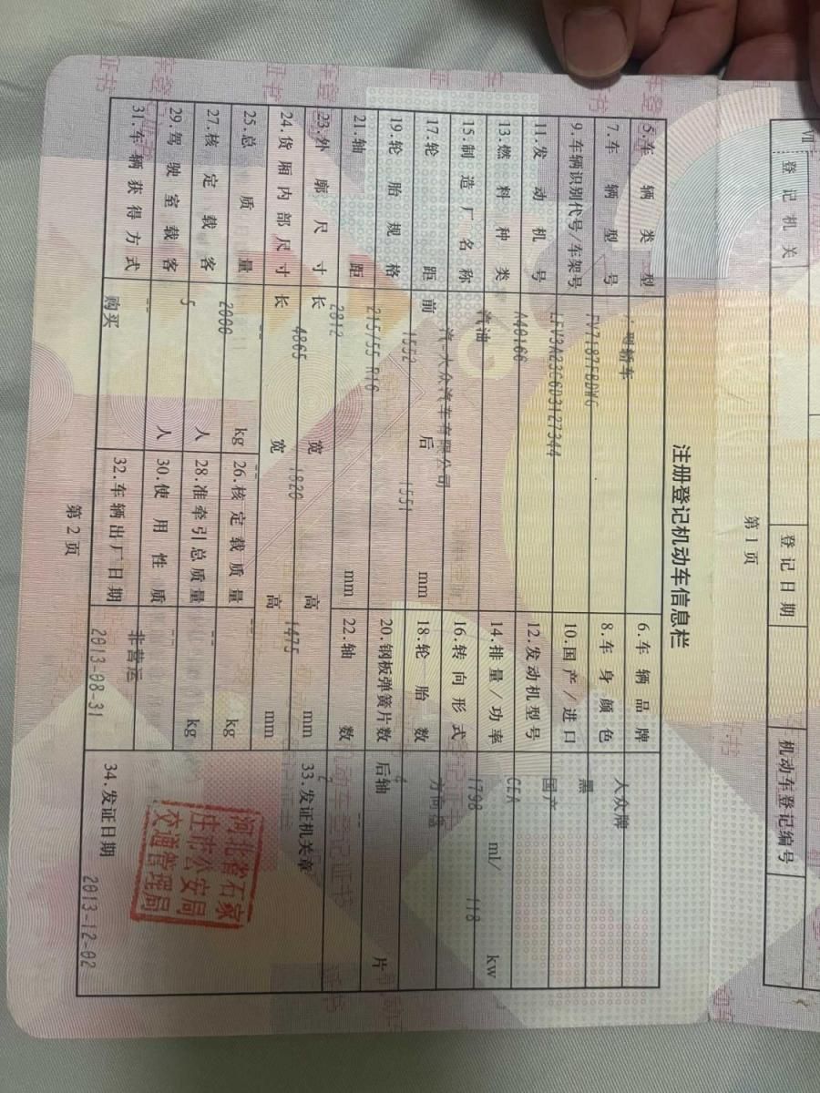 初次登记日期 2013-12-02 车辆名称 大众 迈腾