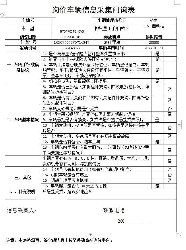 车架号是否受损 使用性质 非营运