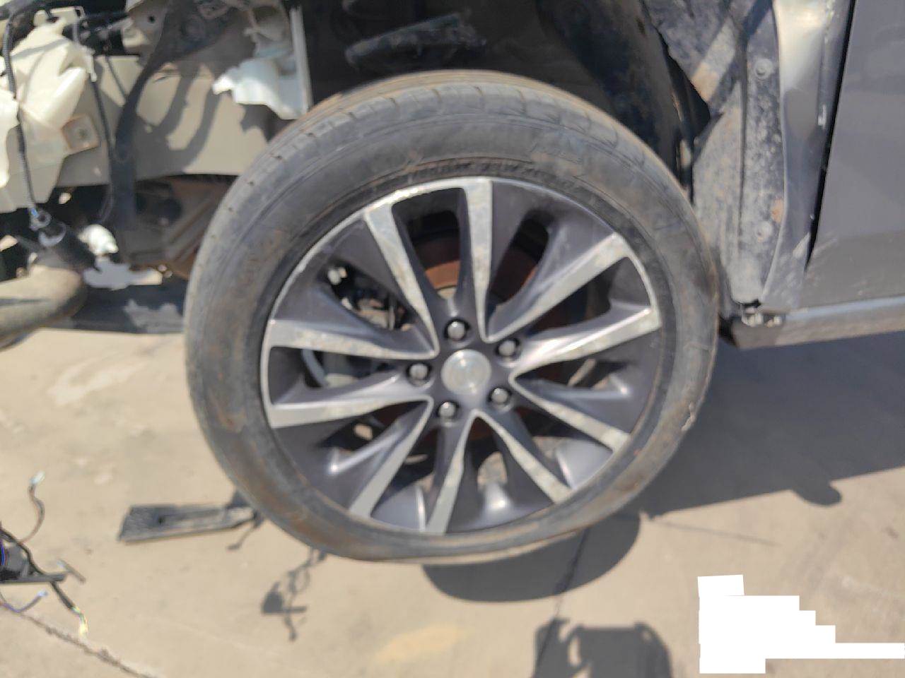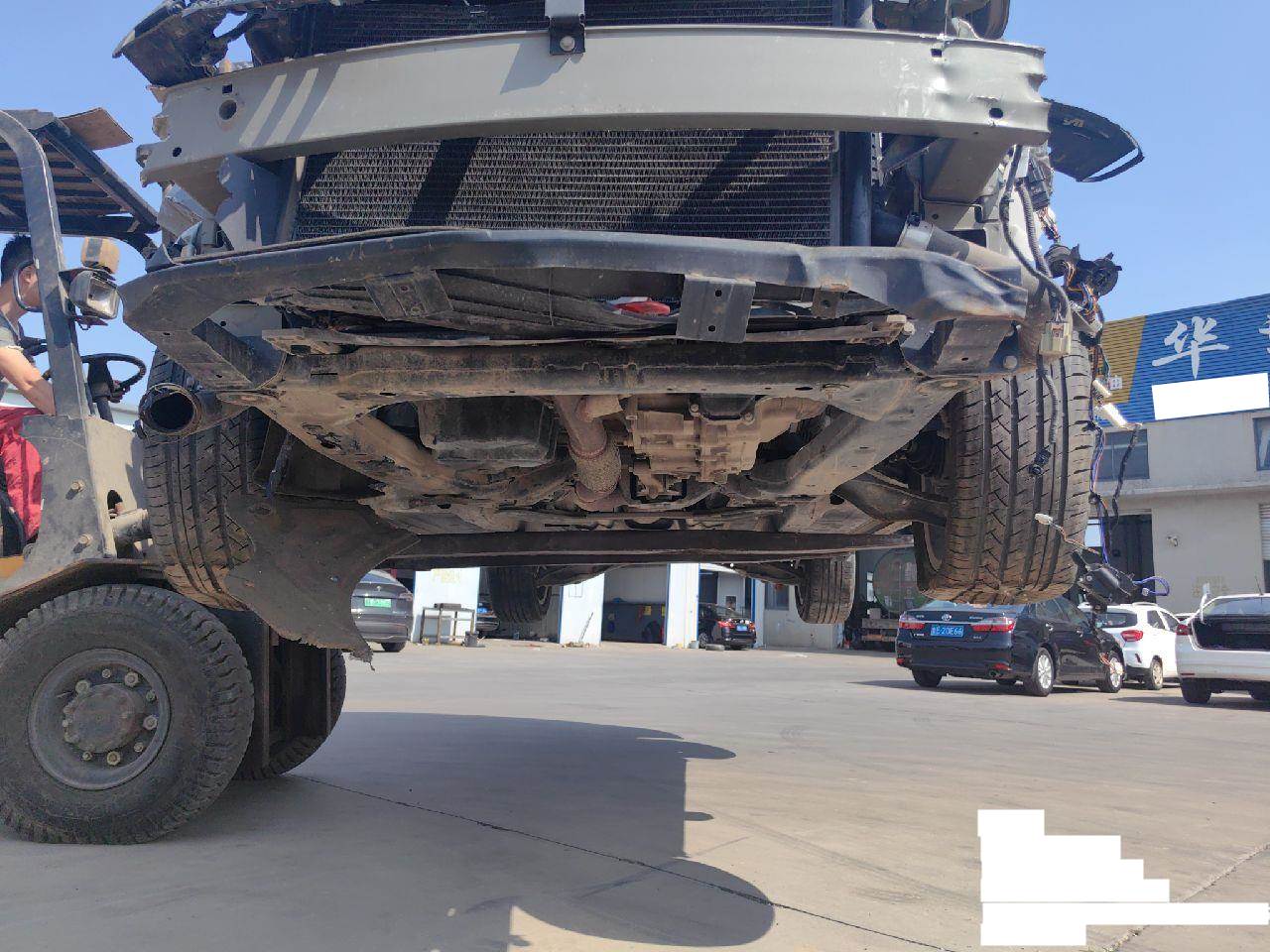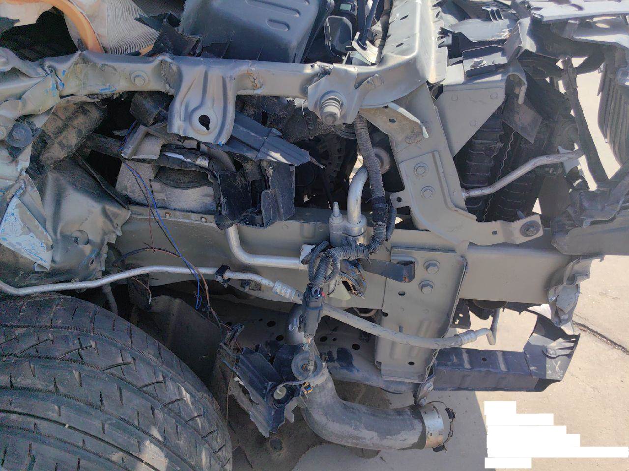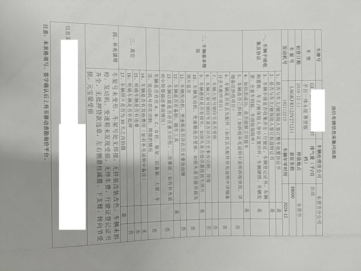 车架号未变形,车架号处无焊接,无拼装改装改色,车辆未拆检,发动机、变速箱未发现受损,无停车费,行驶证登记证书齐全。无抵押贷款违章,左右侧悬挂减震、下支臂、转向节受损。元宝梁受损 5年以上车辆报价后不得以二次事故为由提出议价或退车弃标。