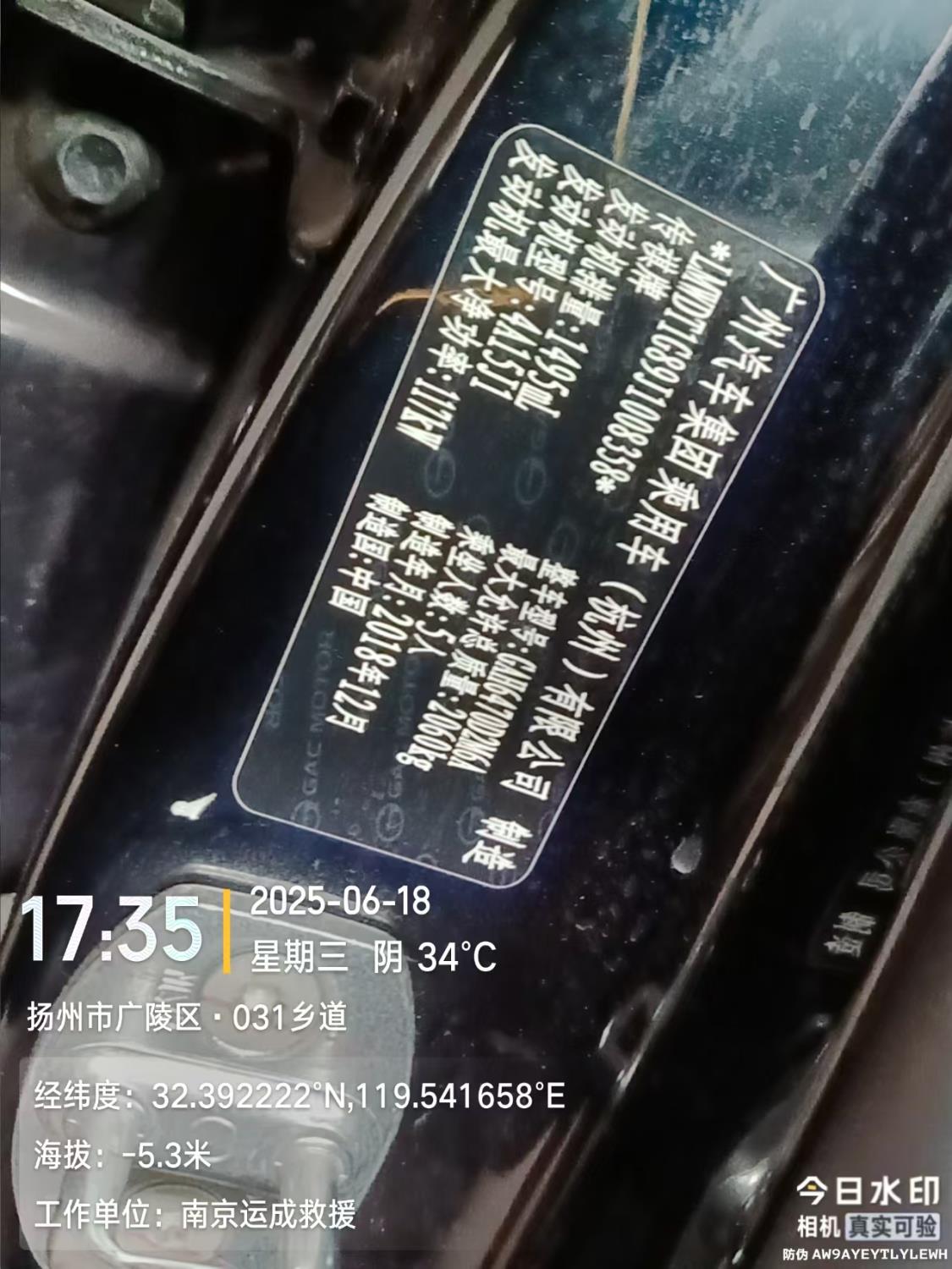 车牌号 苏****** 品牌 广汽