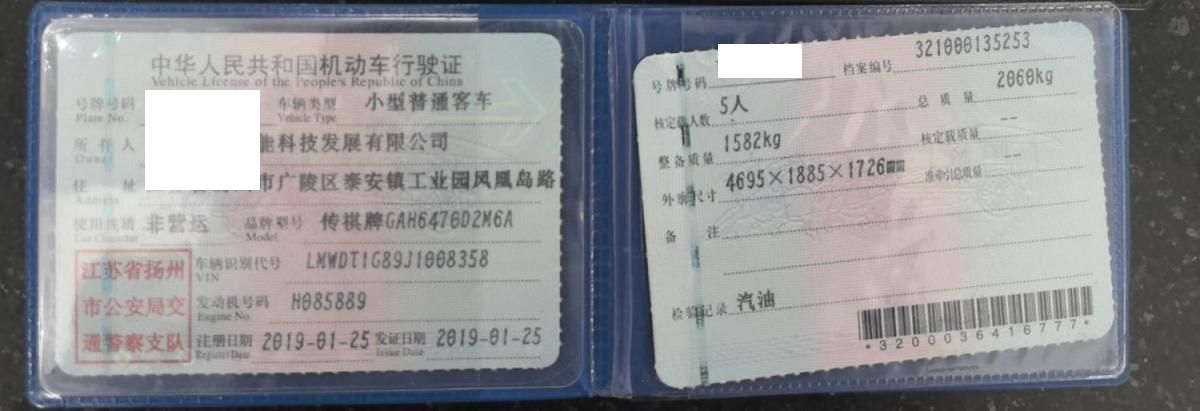 初次登记日期 2019-01-25 车辆名称 广汽传祺 传祺GS5