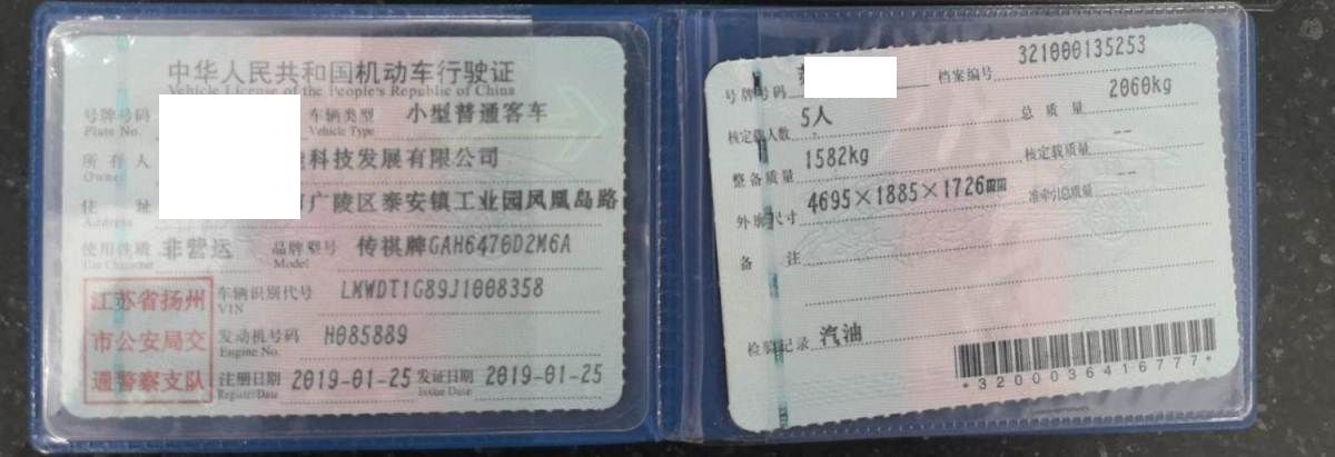 车辆归属地 江苏省扬州市 车辆停放仓库 江苏省扬州市扬州市