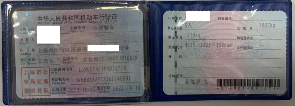 车牌号 沪****** 品牌 欧拉
